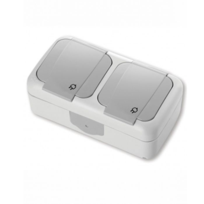 Особливості: Зовнішній накладний монтаж Два гнізда з заземленням Захисна кришка Сірий колір — універсальний для побуту та технічних приміщень IP44 — захист від пилу та вологи Швидкий та зручний монтаж/демонтажХарактеристики: Код: 7.