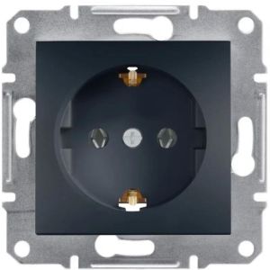 Розетка з контактом, що заземлює, Asfora (антрацит) - це вбудована розетка з антрацитовим кольором, призначена для домашнього використання. Вона має один роз'єм із заземленням. Ця розетка забезпечує надійне та безпечне підключення електричних пристроїв у вашому домі.