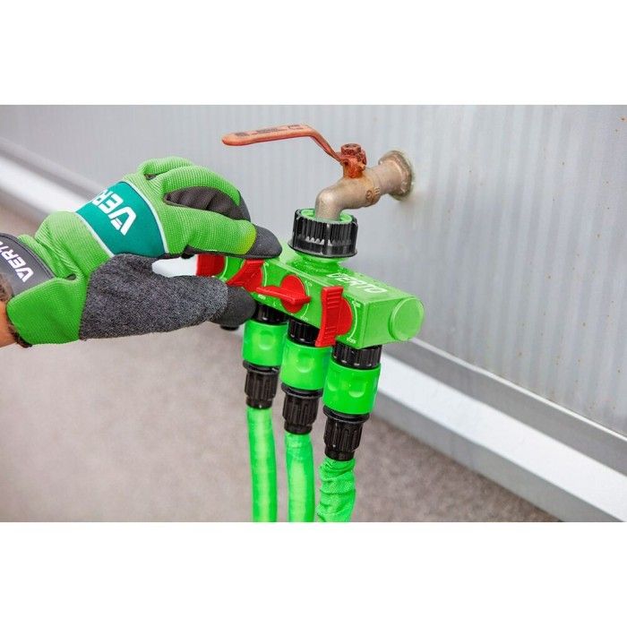 Четырехклапанный распределитель Verto для полива (3/4") - надежный и удобный инструмент для организации системы автоматического полива. Используется для равномерного распределения воды между несколькими зонами полива. Данный распределитель оснащен четырьмя клапанами с возможностью установки индивидуального времени полива для каждой зоны. Имеет стандартное резьбовое соединение размером 3/4", что позволяет легко подключить к шлангу или системе полива.