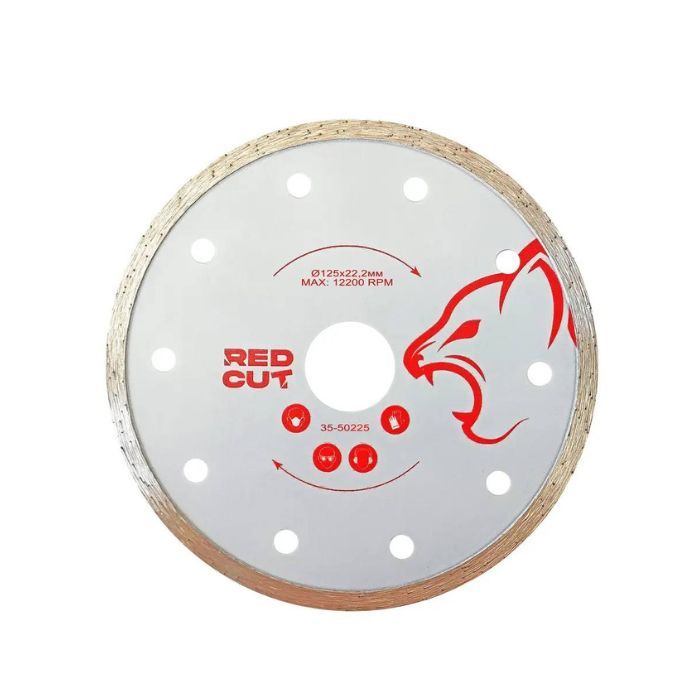 Диск алмазный по камню Continious, 125ммх22,23мм "Red Cut" - это высококачественный режущий инструмент, предназначенный для работы с камнем. Изготовлен из алмазного материала, этот диск гарантирует быстрое и точное резание. Благодаря своей сплошной конструкции, диск имеет большую прочность и стойкость к износу.
