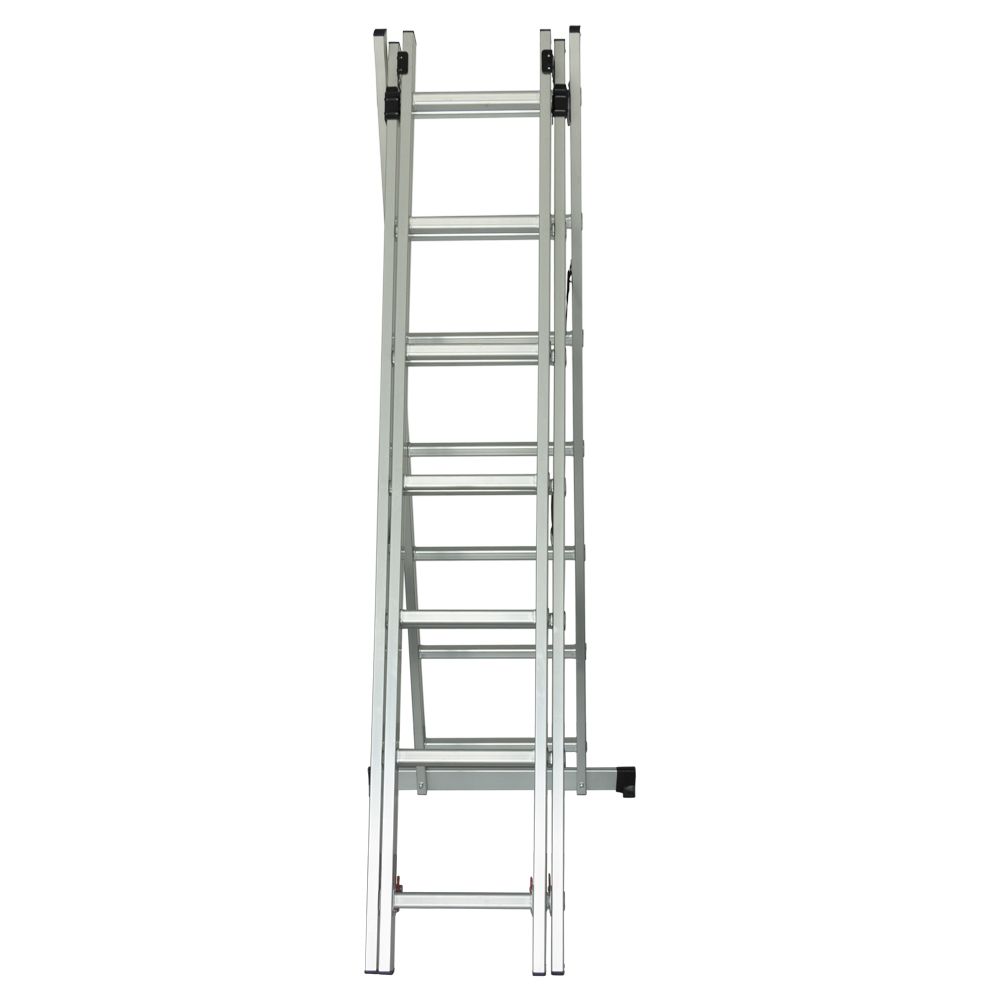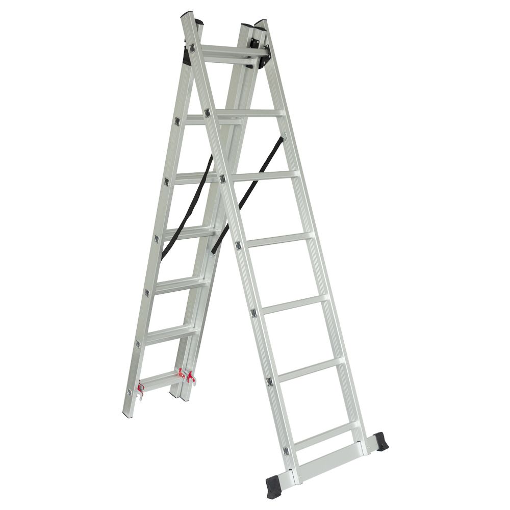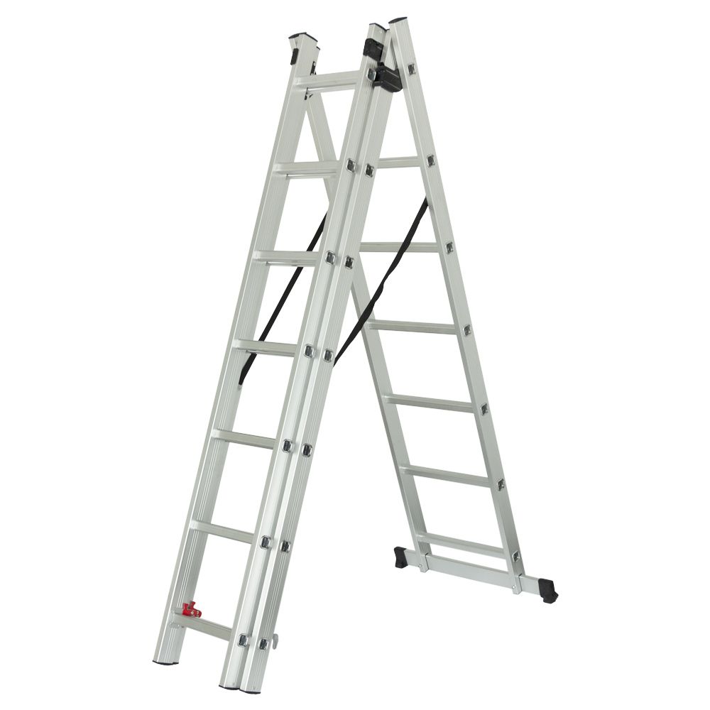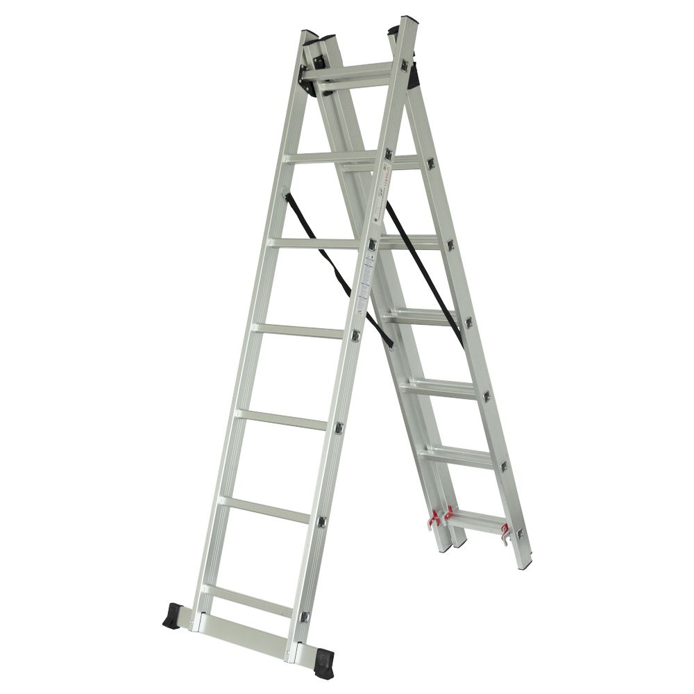 Благодаря продуманной конструкции стремянку можно использовать в трех вариантах: в качестве приставной, выдвижной или в виде обычной стремянки. Это делает его универсальным решением для любых работ на высоте.
