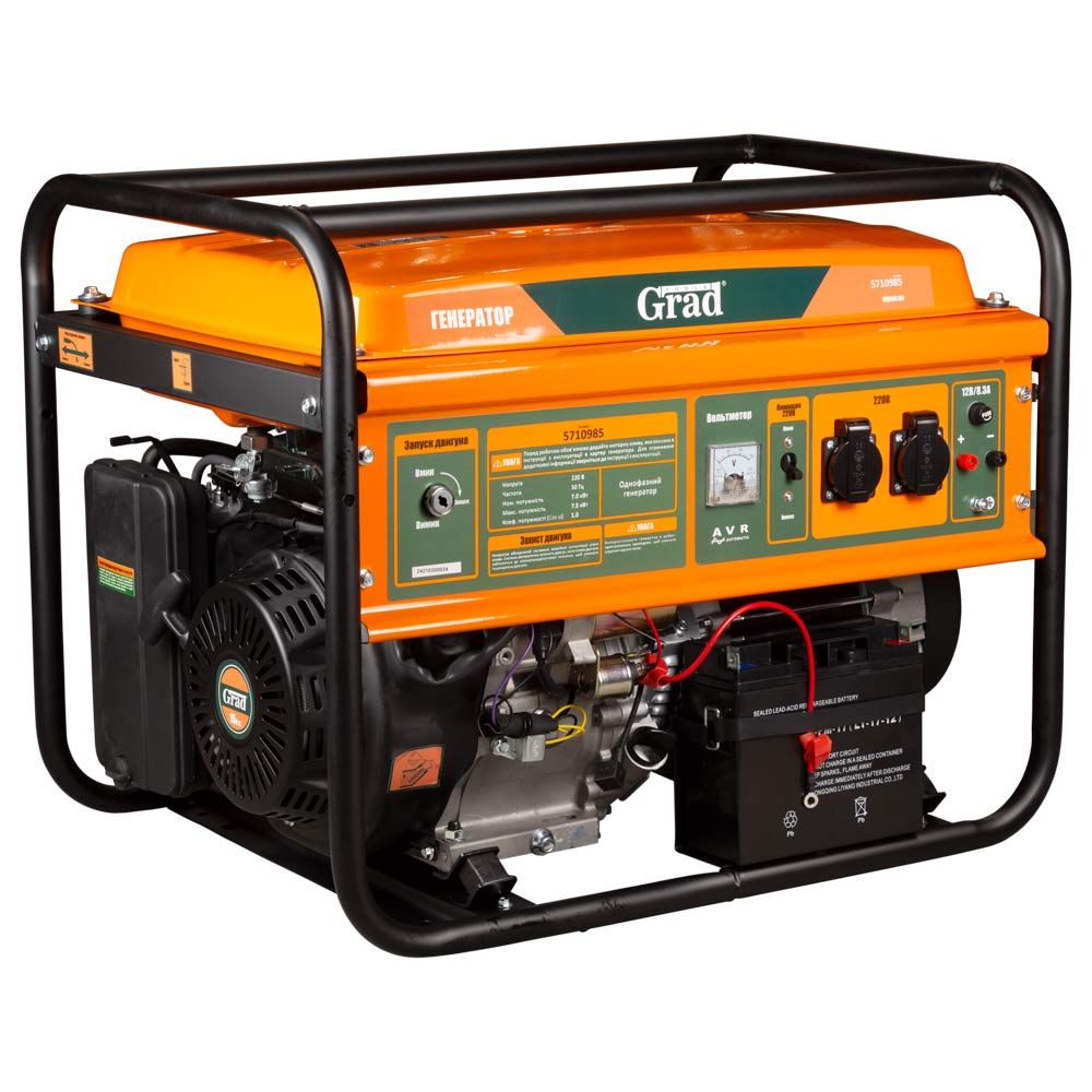 Бензиновый генератор GRAD 7,0/7,5 кВт – современная компактная электростанция с электростартером, которая обеспечивает стабильное питание электроинструментов, оборудования и бытовой техники. Подходит для использования как резервного, так и постоянного источника тока в доме, офисе или на строительной площадке.