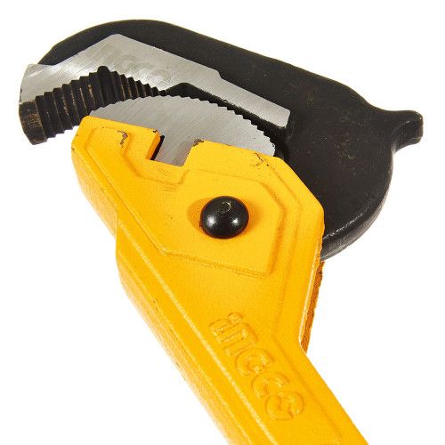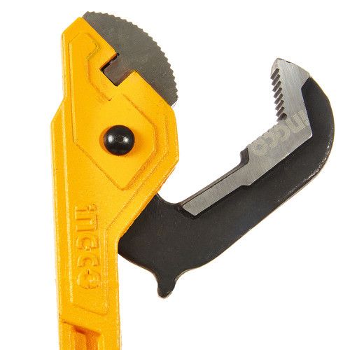 Ключ трубной самозажимной 350 мм (18–52 мм) INGCO INDUSTRIAL - это профессиональный инструмент из высококачественной углеродистой стали. Длина инструмента составляет 350 мм. Ключ имеет максимальный размер разворота 52 мм, что позволяет удобно работать с трубами диаметром от 18 мм до 52 мм. Этот ключ является незаменимым помощником в строительных и ремонтных работах. Используется для затягивания и растягивания труб и фитингов. Материал изготовления - углеродистая сталь, что обеспечивает ему устойчивость к коррозии и длительную эксплуатацию. Данная модель отличается своей компактностью и удобством использования. Она имеет универсальные размеры, что делает ее подходящей для работы с различными типами труб. Благодаря самозажимному механизму, ключ легко фиксируется на трубе, что обеспечивает стабильность во время работы. Высокое качество и надежность гарантируют эффективную и безопасную работу. Добавьте этот ключ к своему инструментарию и он станет незаменимым помощником в любой ситуации.