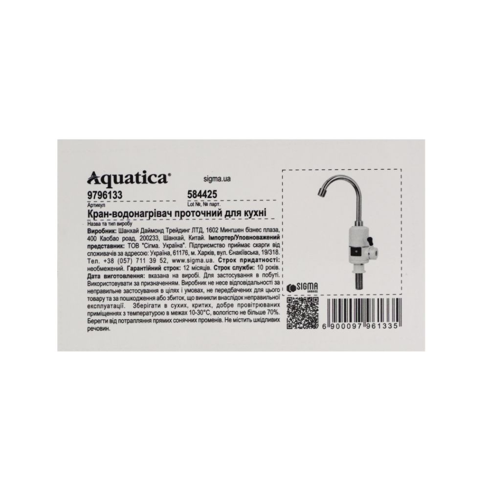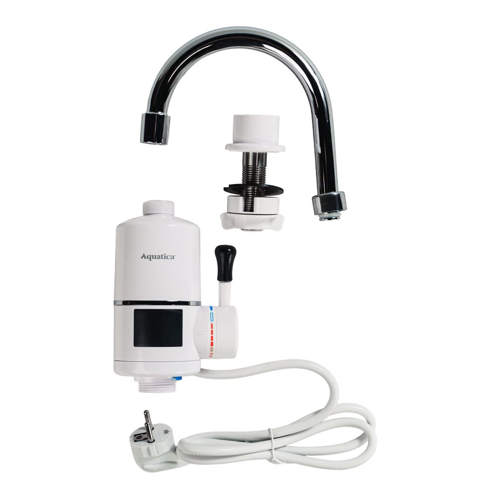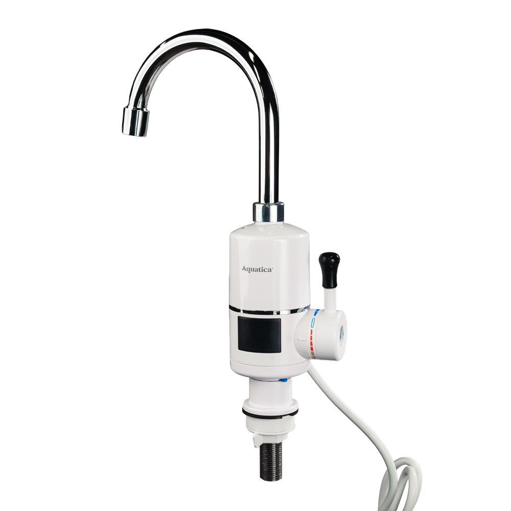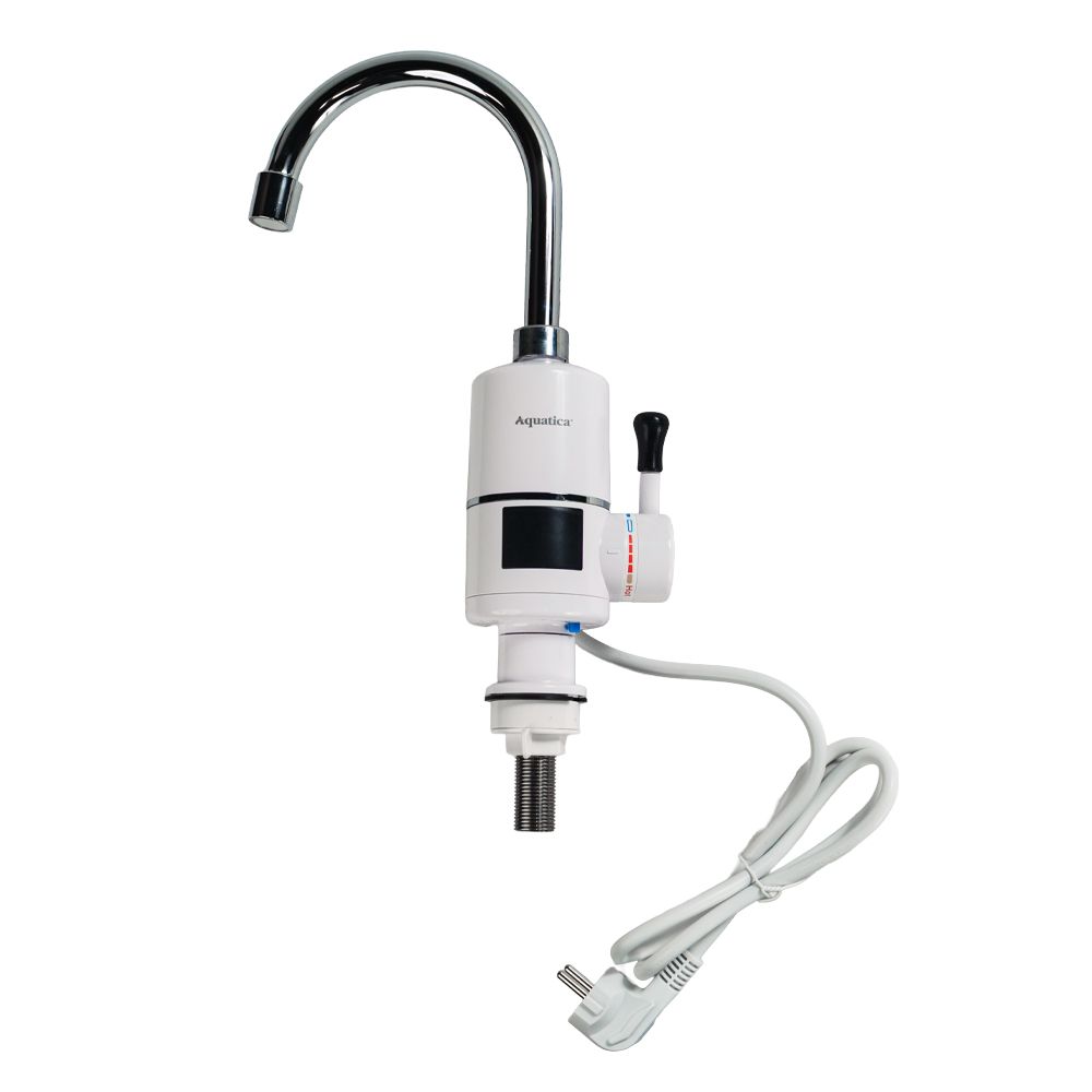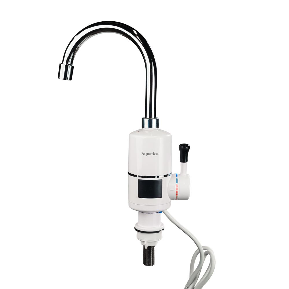 Кран-водонагреватель проточный AQUATICA S96, 3.3 кВт, для кухни, излияние «уха» на гайке, с индикатором и термостатом (9796133)