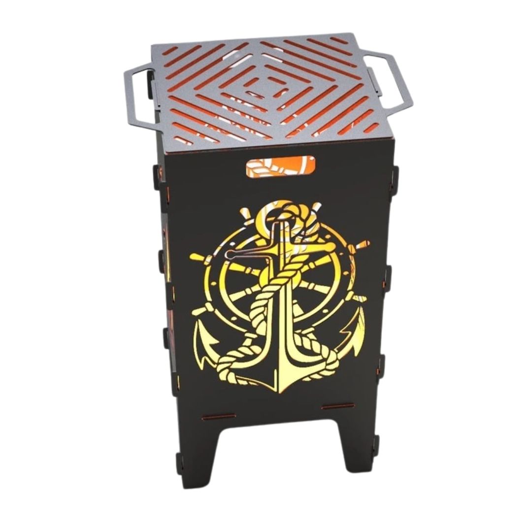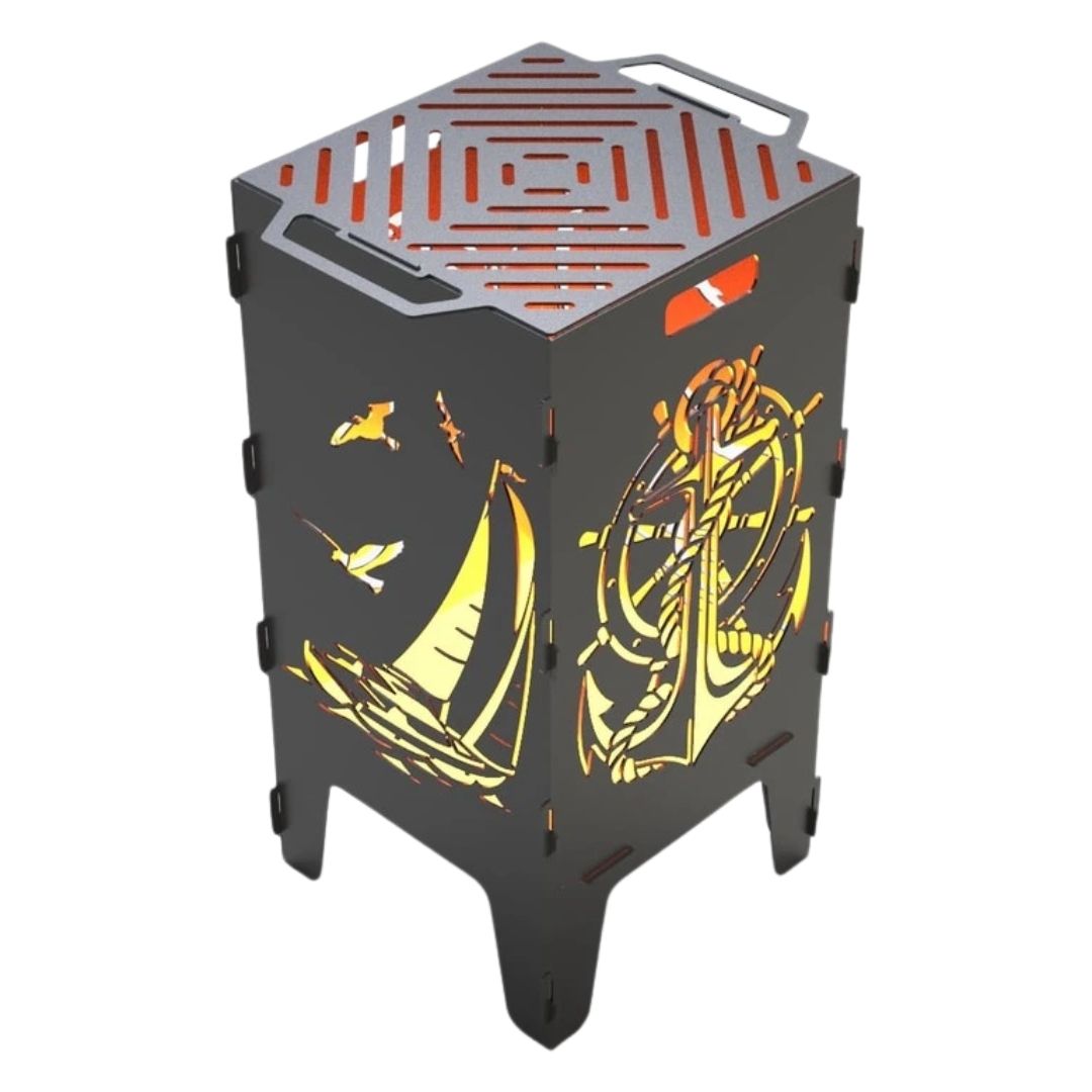 Мангал-барбекю Carino Якорь и Парусник – разборная модель с морским дизайном, сочетающая функциональность и декоративный вид. Вырезы в виде якоря и парусника создают выразительный световой эффект во время горения и придают атмосферной зоне отдыха. Металл толщиной 3 мм обеспечивает надежность и длительный срок службы.