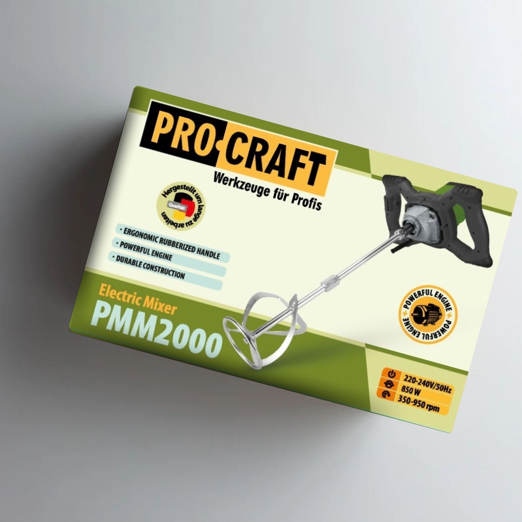 Другие уникальные свойства миксера Procraft PMM2000 New: - Регулируемая скорость смешивания - Эргономичная конструкция для удобного удержания - Высокое качество сборки и материалов - Эффективное охлаждение двигателя обеспечивает длительную работу без перегрева