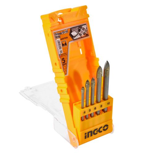 Преимущества набора свердел по стеклу и керамике 5 шт. INGCO INDUSTRIAL: - Высокое качество и долговечность свердел - Возможность сверления отверстий разных размеров - Материал свердел - карбид твердый - Удобная упаковка с набором 5 свердел - Предназначен для сверления в стекле и керамике