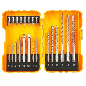Универсальность: Этот набор подходит для сверления отверстий в разных материалах, включая бетон и стекло.