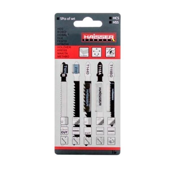 Набор универсальных пилочных полотен HAISSER 5 шт T-SET4 идеально подходит для выполнения различных работ по резанию и обработке металла и дерева. Он обеспечивает точность и скорость работы, позволяя вам легко выполнять такие задачи, как распиливание досок, резка металлических труб, обработка фанеры и многое другое. Этот набор пригодится как профессионалам, так и любителям.