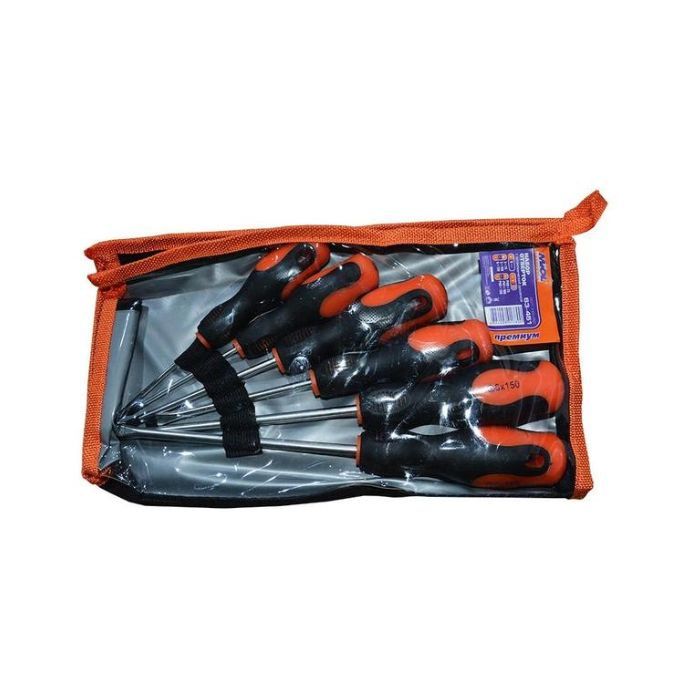 Набор отверток с эргономичной ручкой Cr-V 6шт в сумке является незаменимым инструментом для любого мастера или любителя ремонта. Этот набор включает в себя 6 разных видов отверток с крестовым и шлицевым наконечником, что делает его универсальным для различных видов работ. Длина рабочего штифта составляет от 75 до 150 мм, что позволяет легко работать даже в труднодоступных местах. Эргономичная ручка из пластика и резины обеспечивает удобное и надежное удержание в руках. Этот набор отверток отлично подходит для использования в доме, гараже, на производстве или во время отдыха. Отвертки выполнены из высококачественной хром-ванадиевой стали, что обеспечивает их прочность и долговечность.