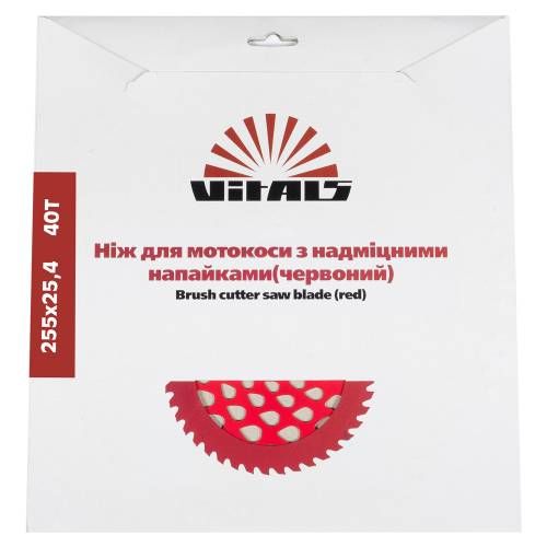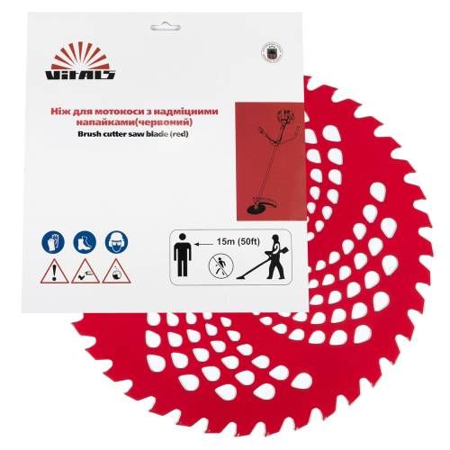 Нож к мотокосе 40 зуб. (нерж.сталь) в уп. Красный – это высококачественный нож, предназначенный для использования с мотокосами. Изготовлен из нержавеющей стали, что обеспечивает долговечность и прочность. Диаметр ножа составляет 255 мм, что делает его идеальным для различных работ по обрезке газона и травы. Благодаря своим характеристикам этот нож обеспечивает быстрое и эффективное выполнение задач. Используя этот нож, вы сможете легко заботиться о вашем дворе и хранить его в строю.