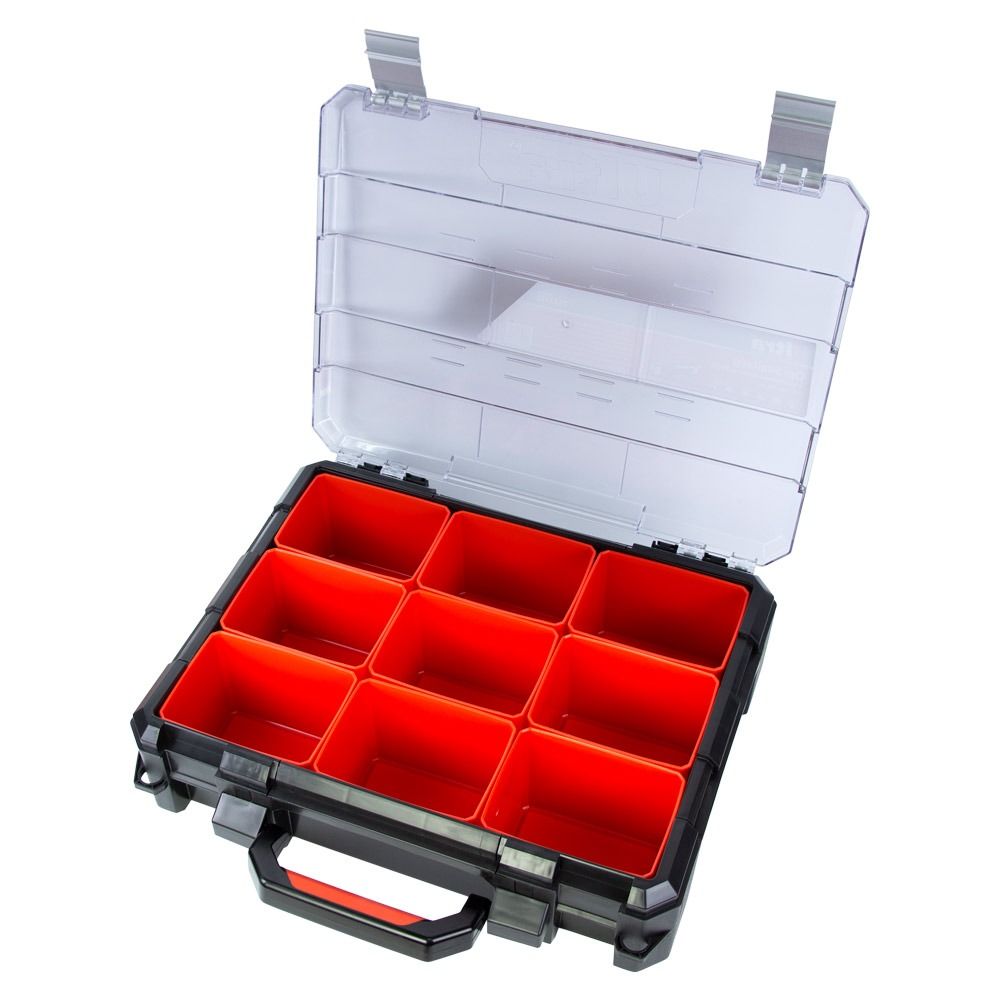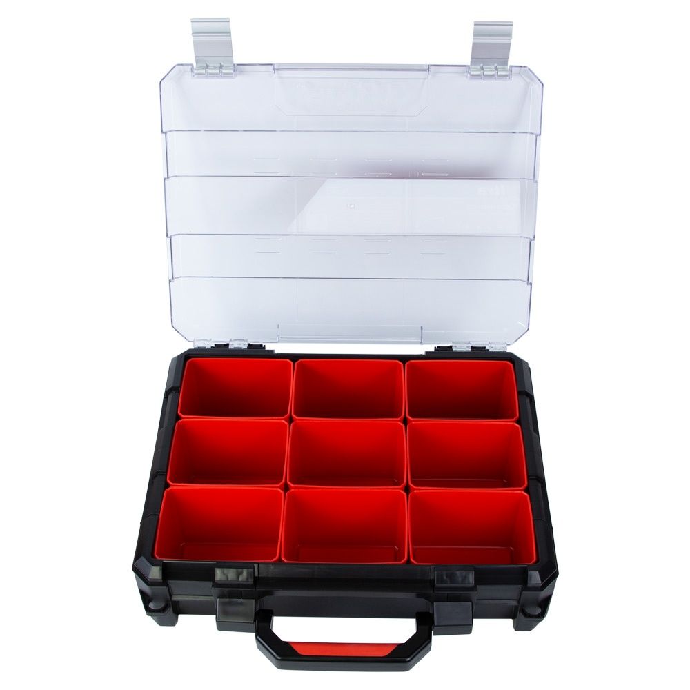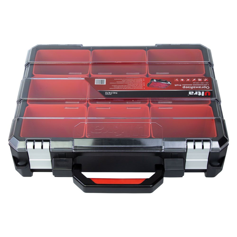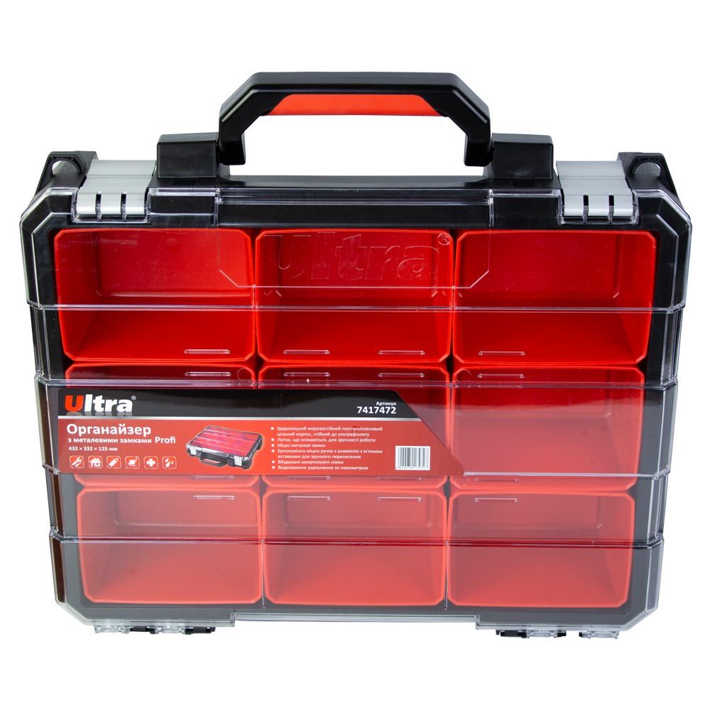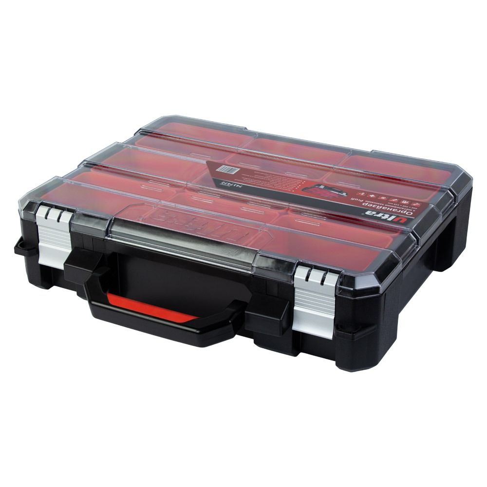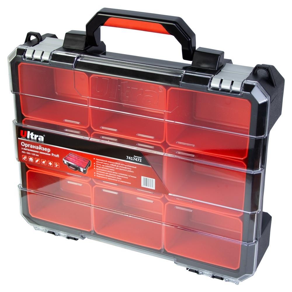 Органайзер металлические замки Profi ULTRA 432×332×125 мм (7417472) предназначен для удобного хранения, транспортировки и быстрого доступа к ручному инструменту и мелким деталям. Благодаря нескольким секциям легко систематизировать крепеж, шайбы, гайки и другие элементы.
