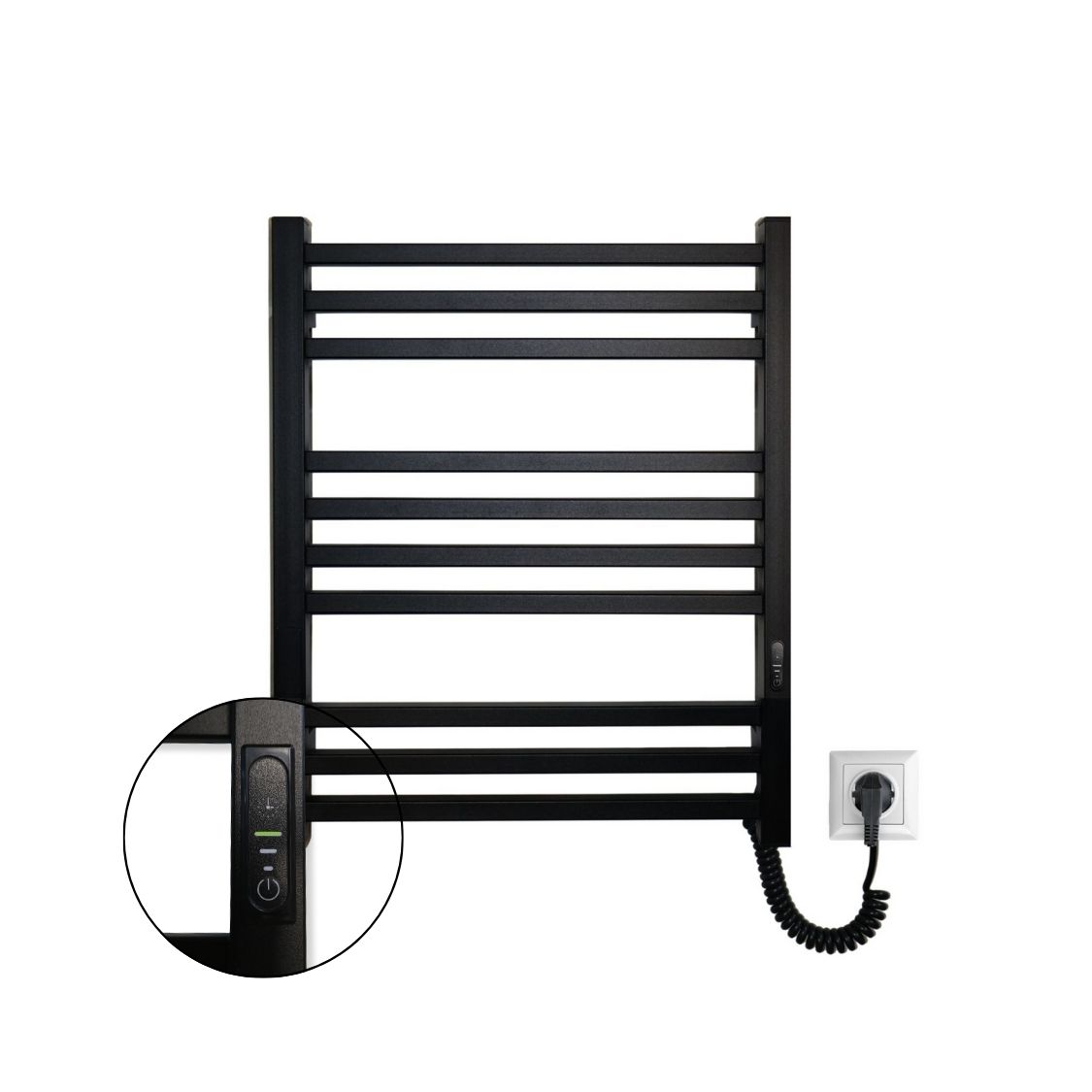 Электрический полотенцесушитель Lorenzo 590×490 — компактная и стильная модель с итальянским характером, сочетающая элегантный дизайн, инновационное управление и эффективную технологию сухого ТЭНа.