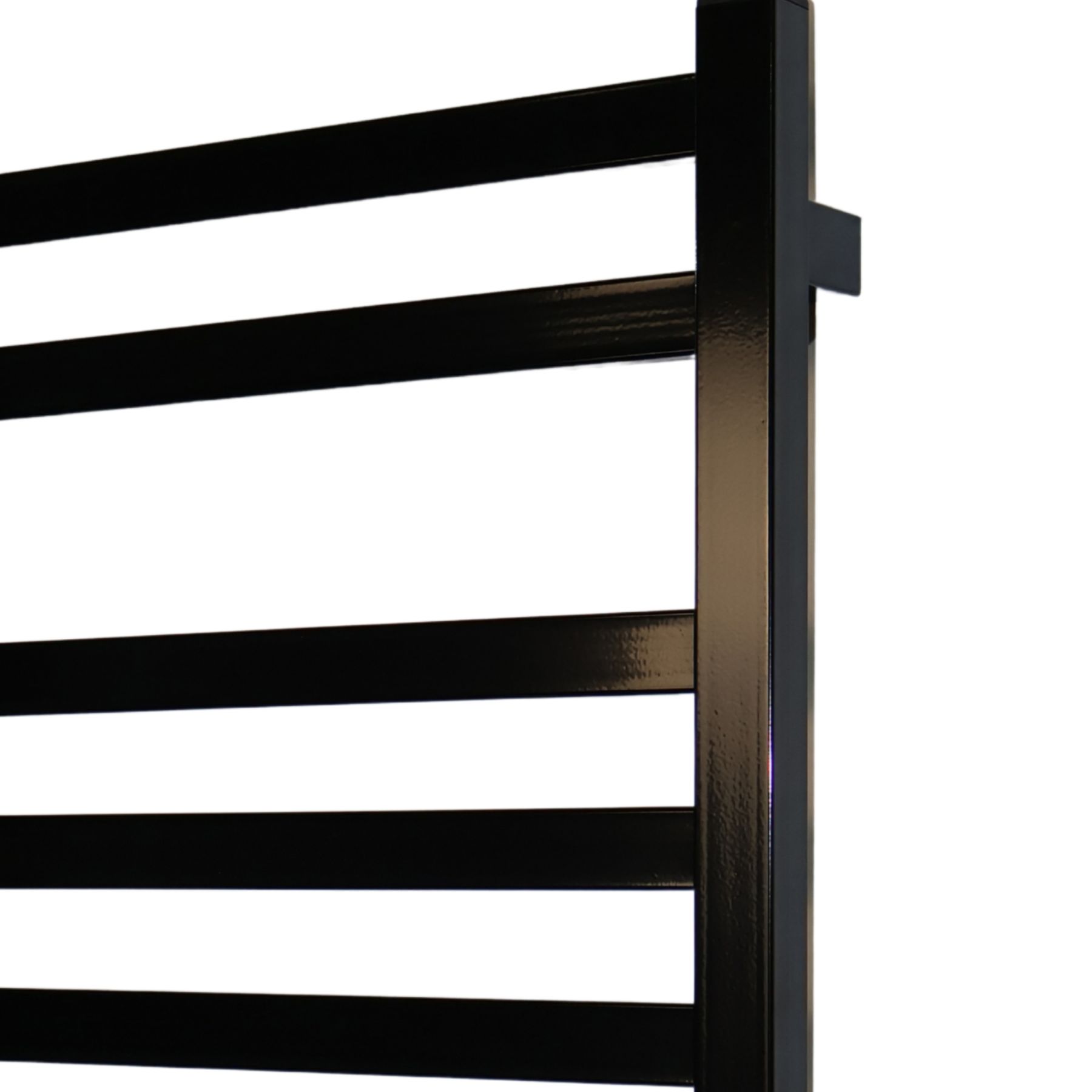 Конструкция состоит из 7 профильных ребер размером 30х10 мм и квадратных стоек 30х30 мм, которые формируют четкие линии и гармонические пропорции. Модель доступна в четырех классических цветах – черный мат, черный глянец, белый мат и белый глянец – для идеального сочетания с любым интерьером.