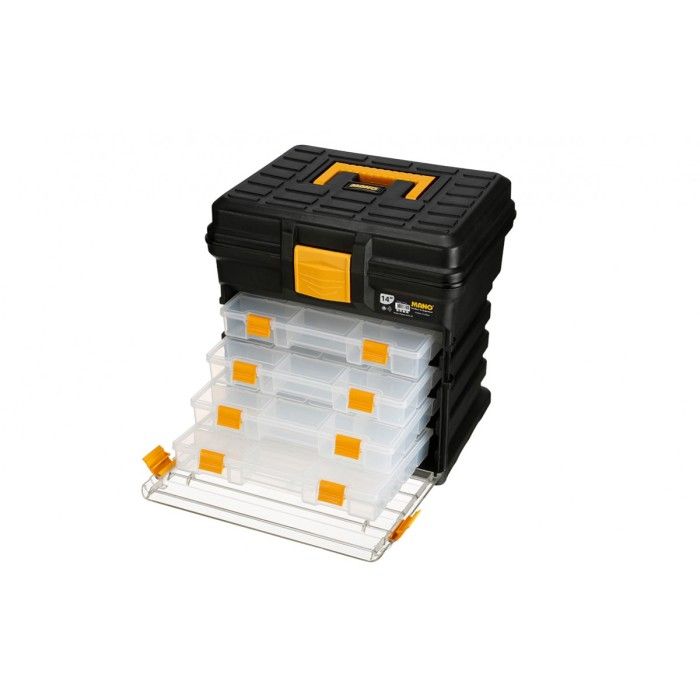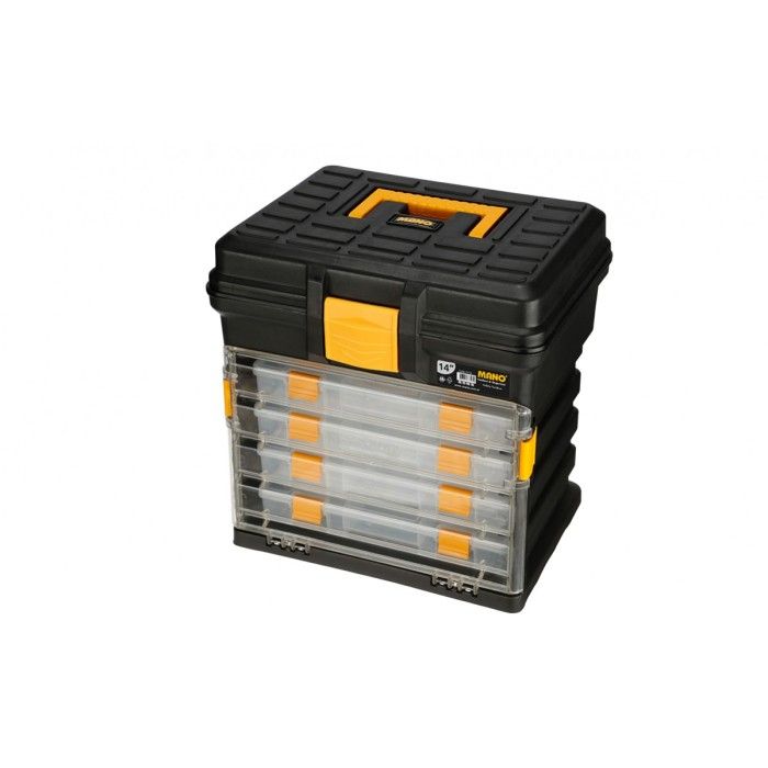 Ящик для инструментов MANO H-14 - идеальный выбор для хранения инструментов в порядке. Изготовлен из качественного материала, он имеет размер 340x272x341 мм, что обеспечивает достаточно места для размещения различных видов инструментов. Удобная ручка позволяет легко переносить ящик, а прочные зажимы обеспечивают надежное закрытие. Модель оснащена выдвижными секциями для удобного размещения инструментов. Этот ящик является надежным и практичным решением для любого мастера или любителя ремонта.