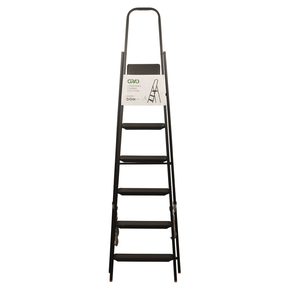 Стремянка стальная GRAD 6 ступеней 2,05 м (5035885) – компактная и удобная переносная лестница, которая устанавливается без опоры к стене. Используется для внутренних и наружных ремонтных и строительных работ, бытовых нужд, а также для садовых задач, например уборка урожая.
