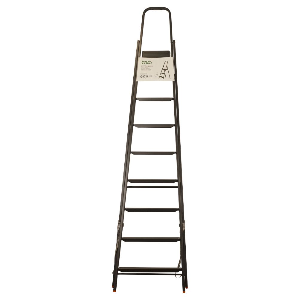 Стременка стальная GRAD 8 ступенек 2,55 м (5035905) – удобная переносная лестница, не требующая опоры к стене. Используется для строительных и ремонтных работ внутри и снаружи помещений, а также в быту или уборке урожая в саду.
