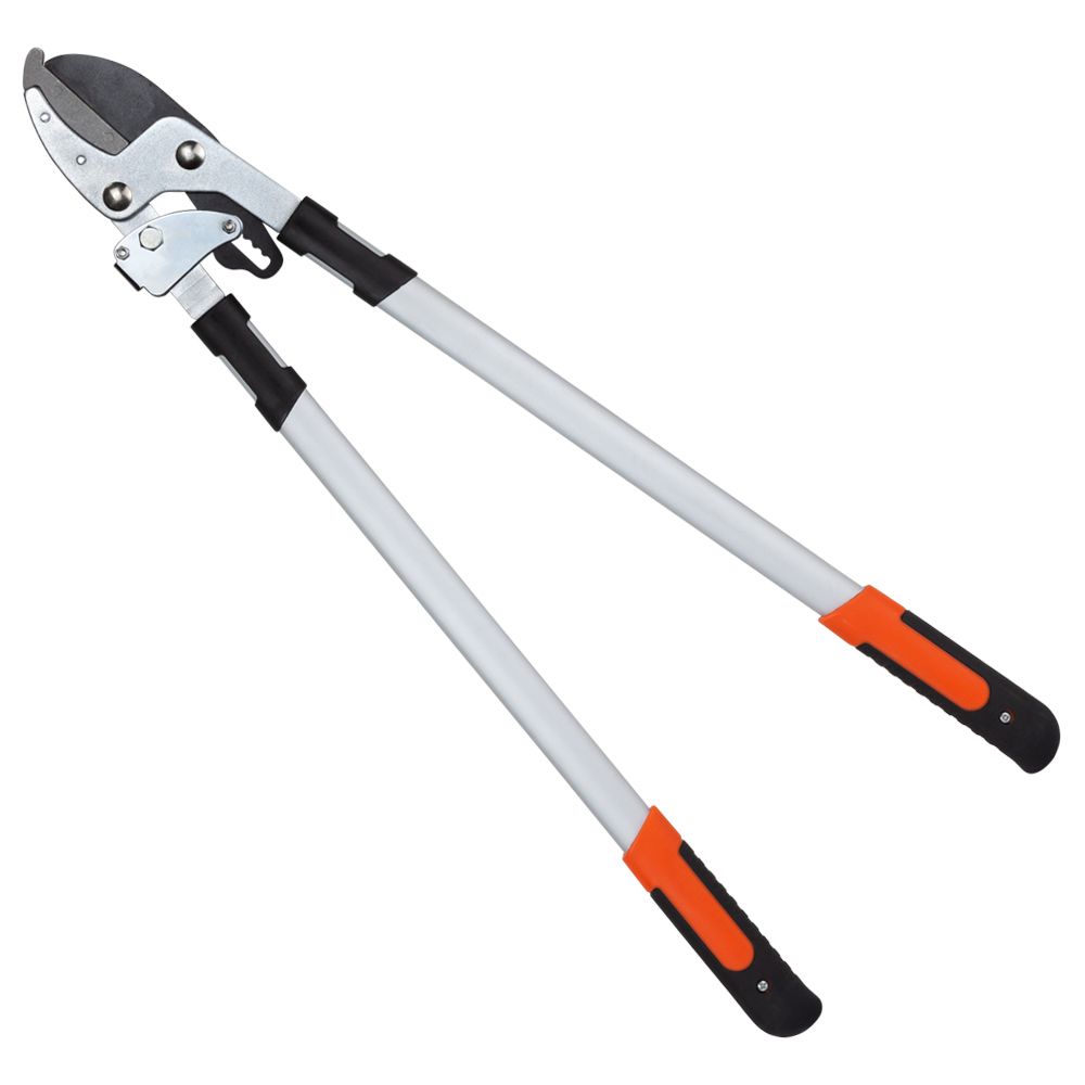 Сучкорез FLORA 5022574 – надежный инструмент для обрезки толстых и сухих веток в саду. Благодаря храповому механизму срез выполняется постепенно, что значительно уменьшает нагрузку на руки и позволяет работать даже с твердой древесиной. Длинные алюминиевые рукоятки (762 мм) обеспечивают удобный рычаг и легкость инструмента, делая работу комфортной и менее изнурительной. Эргономичные накладки на ручках предотвращают скольжение и повышают точность работы.