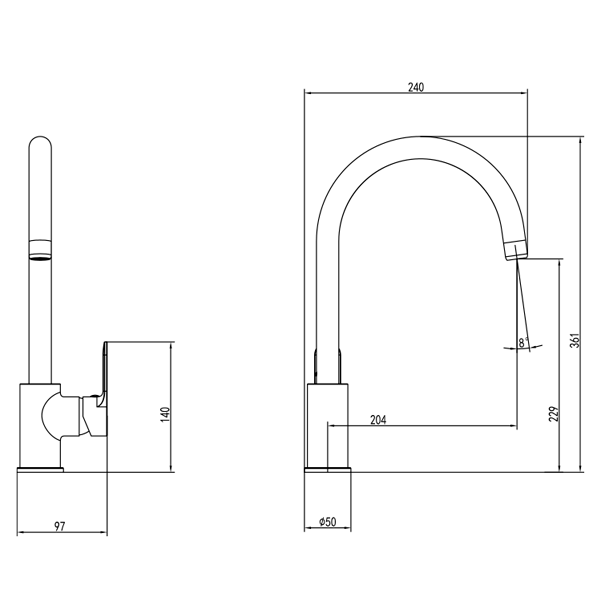 Смеситель CORSO RIVA Ø35 для кухни с J-изливом на гайке DE-4B139C (9629100)