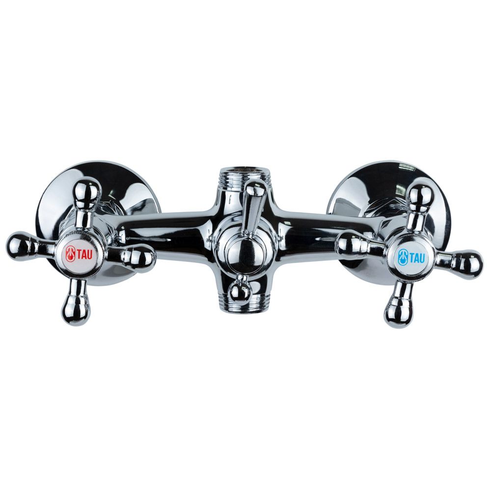 Двухвентильный смеситель в классическом стиле с прямым длинным изливом и встроенным шаровым дивертором. Имеет оригинальный дизайн ручек с маркированными заглушками, что обеспечивает удобство и понятность в использовании.