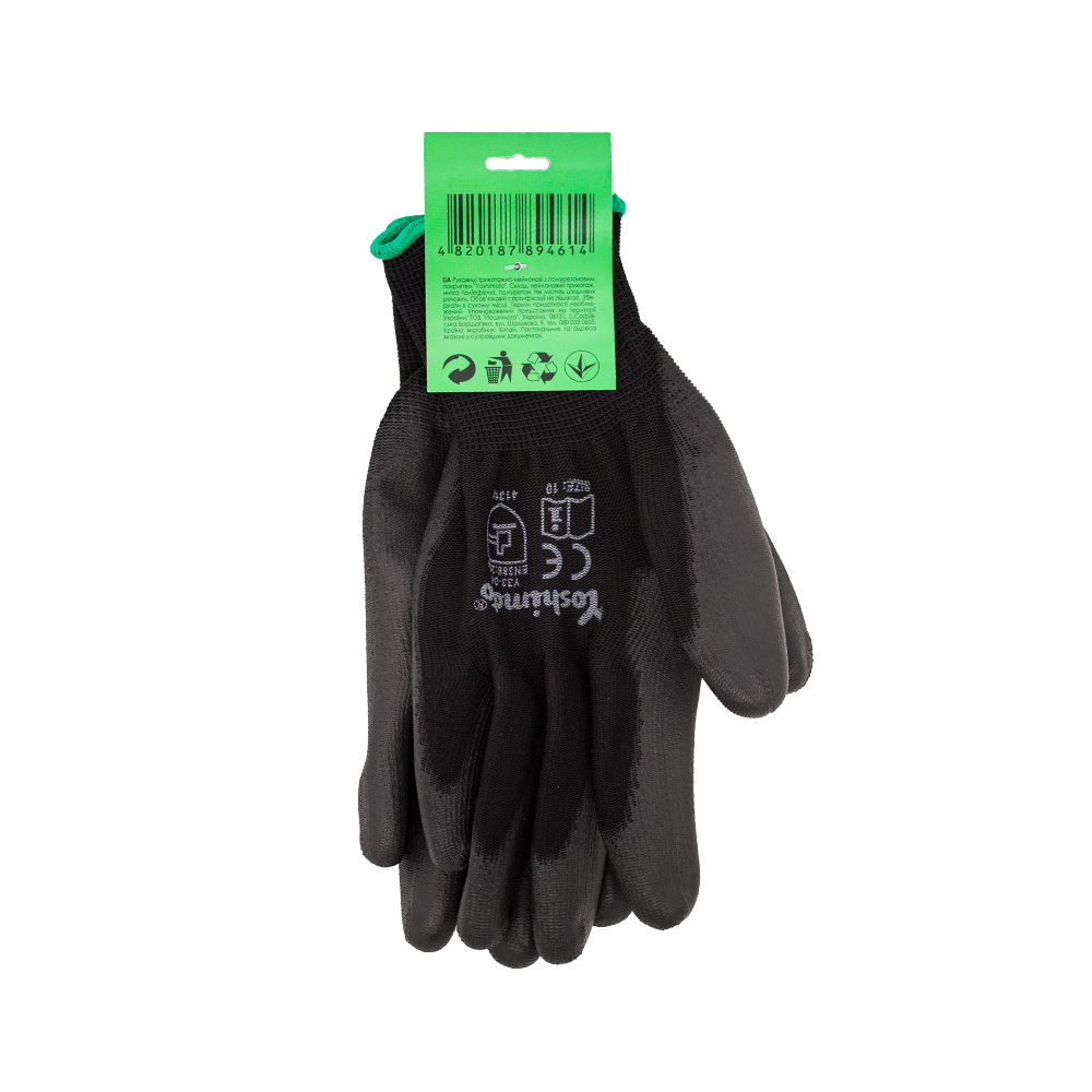 Характеристики матеріал: поліестер з поліуретановим покриттям Тип: безшовні Розмір: 10 (обхват долоні — 254 мм, довжина — 204 мм) Зносостійкість: 8000 циклів Опір порізам: 1,2 коефіцієнта Міцність на розрив: 50 Н Опір на прокол: 20 Н Призначення: точні монтажні, слюсарні та складальні роботи