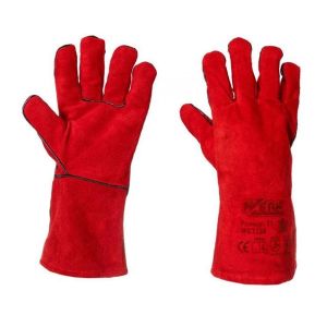 Замшеві рукавички з манжетом крага, червоного кольору, розмір 11. Ці рукавички виготовлені з якісного замшу, що забезпечує м'якість і комфорт при носінні. Манжет з крагом дозволяє плотно фіксувати рукавички на руці, що захищає від проникнення холодного повітря. Розмір 11 підходить для середнього розміру руки. Червоний колір надає рукавичкам стильний вигляд.