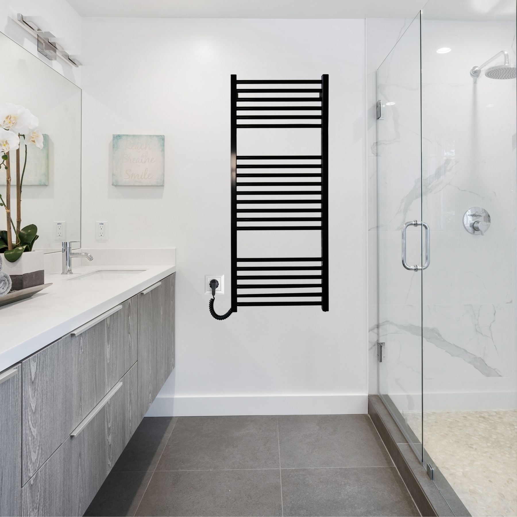 Передбачено подвійний вивід живлення, що дозволяє підключення з будь-якого боку, а також комплект прихованого монтажу для охайної установки.