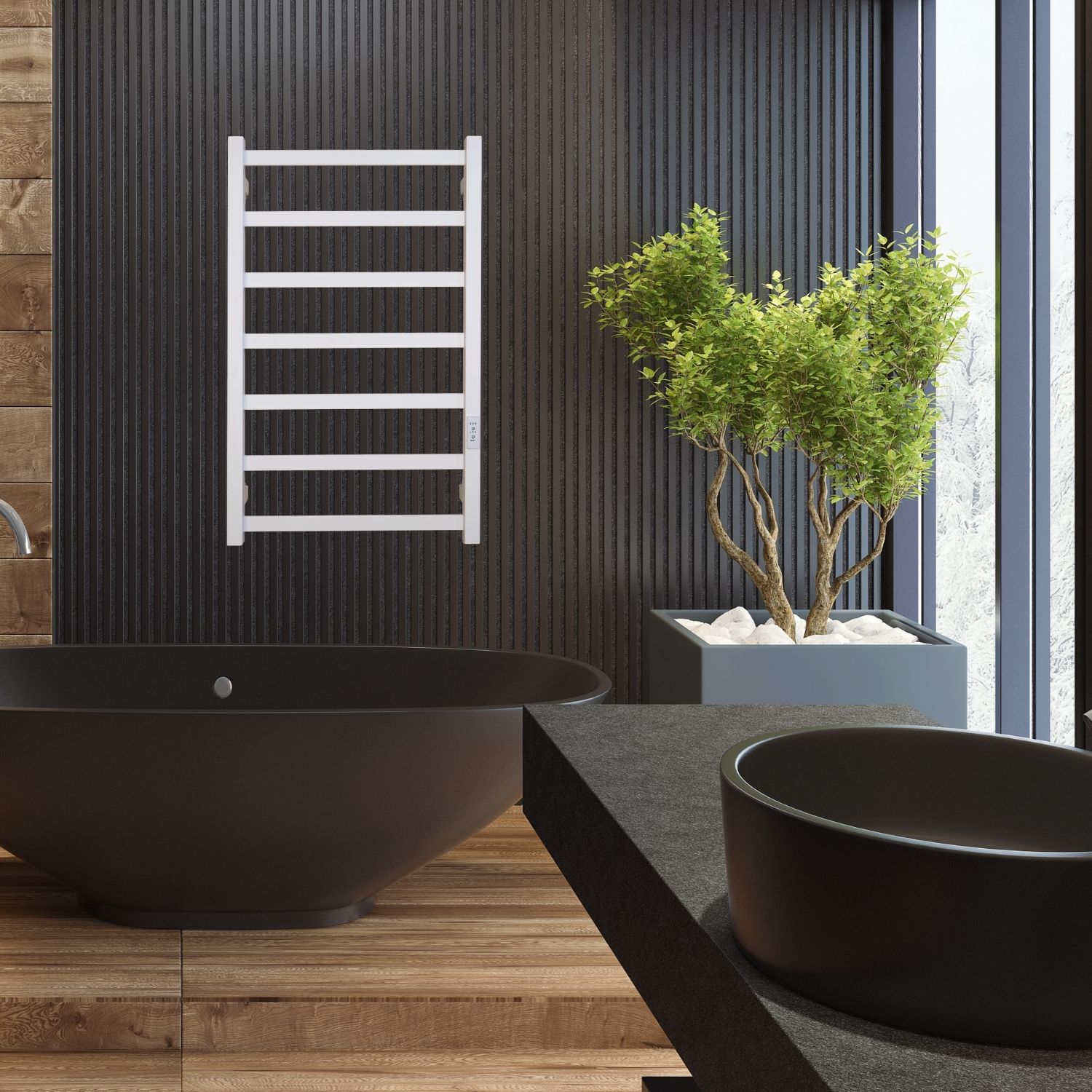 Електрична рушникосушарка Carino LAURA розміром 790490 мм – це стильне та функціональне рішення для ванної кімнати, яке поєднує сучасні технології та італійську естетику.