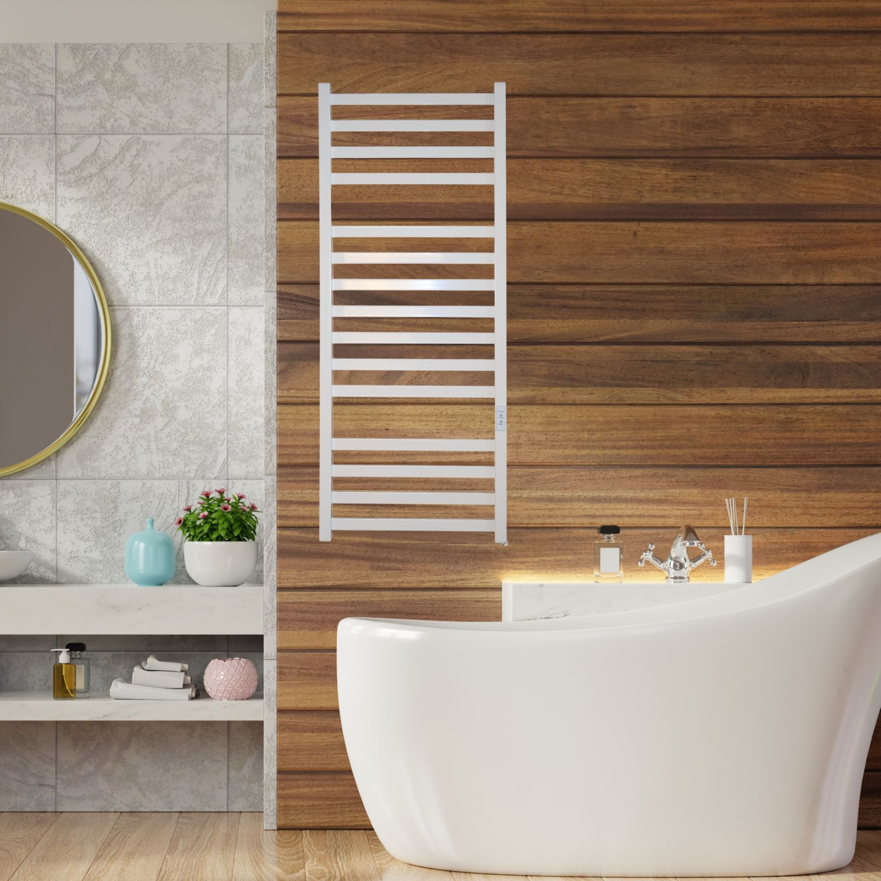 Електрична рушникосушарка Ricardo 1190x490 виготовлена за сучасною технологією сухого ТЕНу, що забезпечує швидкий та рівномірний нагрів, стабільну температуру та економне енергоспоживання.