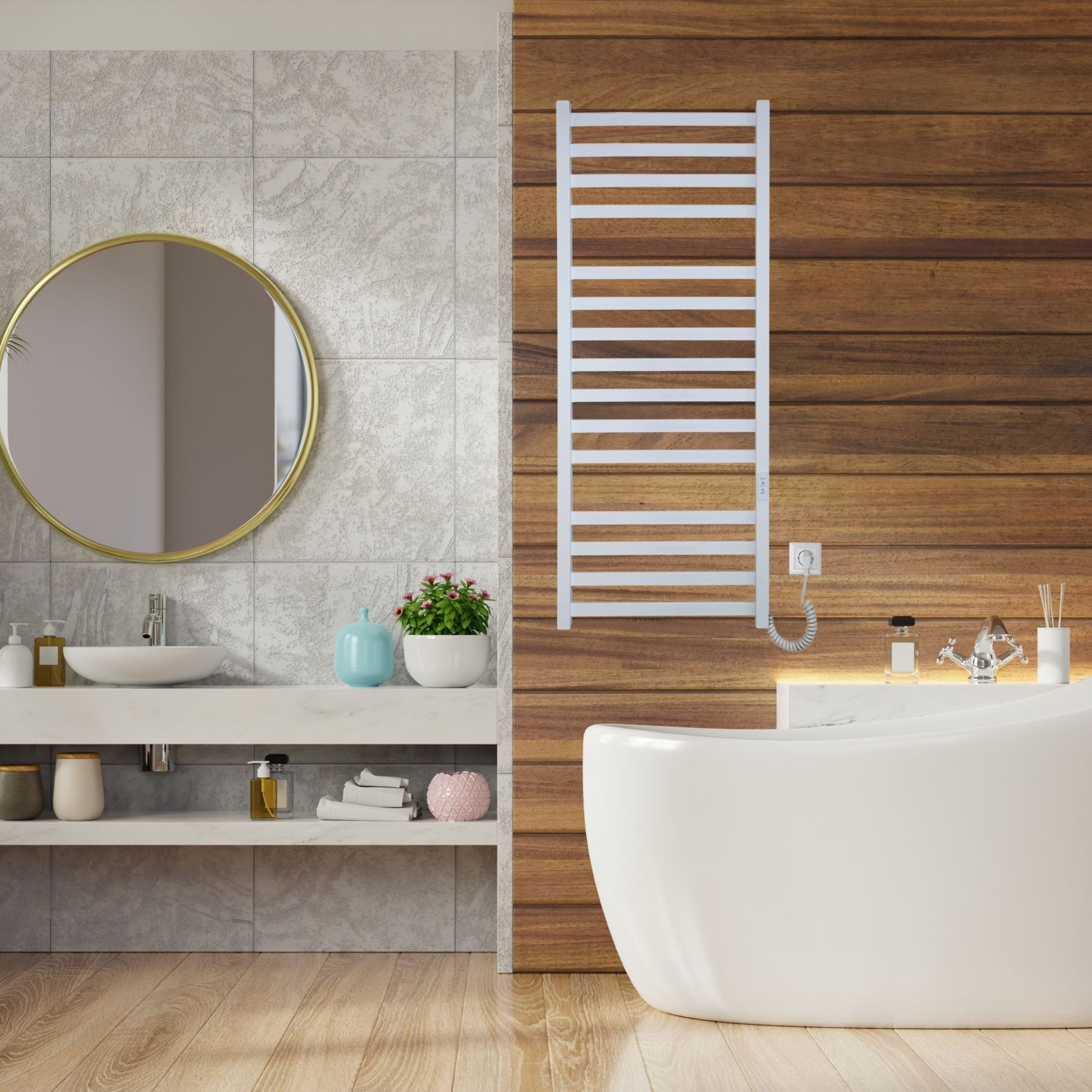 Електрична рушникосушарка Ricardo 1190x490 виготовлена за сучасною технологією сухого ТЕНу, що забезпечує швидкий прогрів, стабільну температуру та економне споживання електроенергії.