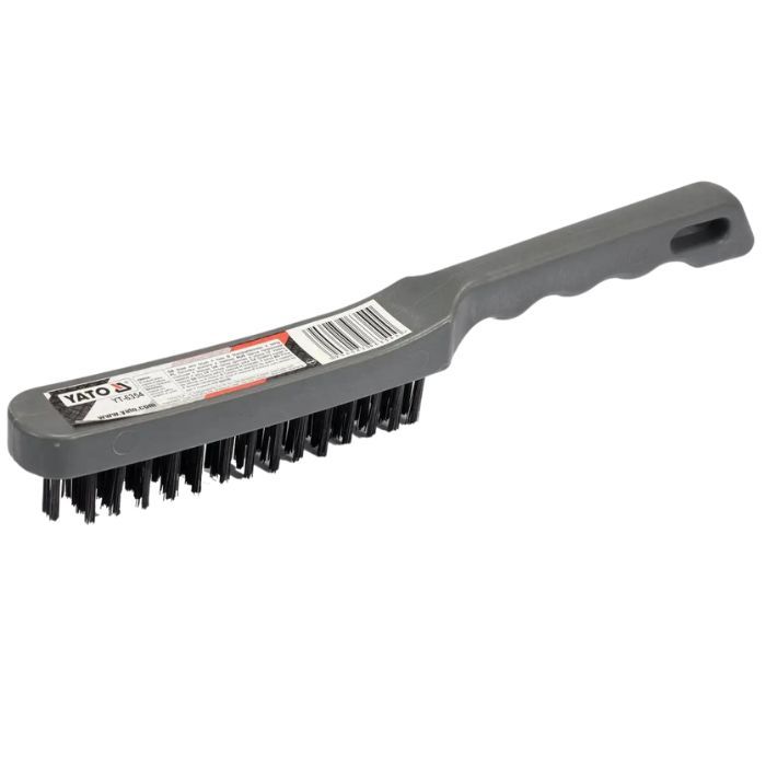 Основні переваги щітки дротяної стальної з пластиковою ручкою: - Якісні матеріали, що забезпечують довговічність і надійність інструмента; - Зручна ручка з пластику, яка не ковзає у руці і забезпечує комфортний захват; - 4 ряди жорстких волокон для ефективного очищення поверхонь; - Відсутність перфорації дозволяє швидше і рівномірно наносити рідину; - Універсальне застосування для різних матеріалів; - Ідеальний вибір для професіоналів і досвідчених майстрів.