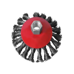 Щітка конусна (пучки кручений дроту) діаметром 115 мм. Виготовлена з металу. Не має перфорації. Ця щітка призначена для використання з різними типами поверхонь. Вона ідеально підходить для роботи з металом. Щітка має конусну форму, що дозволяє легко проникати в важкодоступні місця. Кручений дріт забезпечує максимальну ефективність очищення та видалення фарби або іржі. Рекомендована режим роботи - М14.