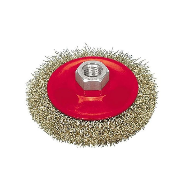 Щітка-крацовка VOREL плоска =115мм з гайкою М14 ідеально підходить для очищення та підготовки поверхонь перед фарбуванням. Завдяки міцним сталевим дротам та надійному кріпленню з гайкою M14, вона ефективно видаляє іржу, фарбу та інші забруднення. Ідеальна для використання з кутовими шліфмашинами.
