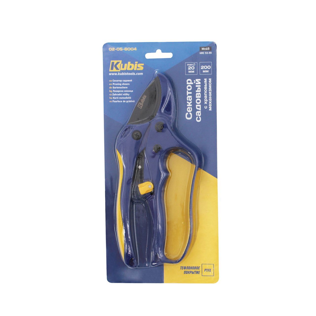 Садовий секатор з храповим механізмом та лезом з тефлоновим покриттям Mn65, HRC 53-55. Цей секатор призначений для універсального використання і має посилену конструкцію. Виготовлений зі сталі, довжина секатора - 20 см. За допомогою цього секатора ви зможете без зайвих зусиль обрізати гілки діаметром до 20 мм. Такі особливості як храповий механізм і тефлонове покриття на лезі забезпечують легке та точне різання. Садовий секатор є незамінним інструментом для садівників та ландшафтних дизайнерів.