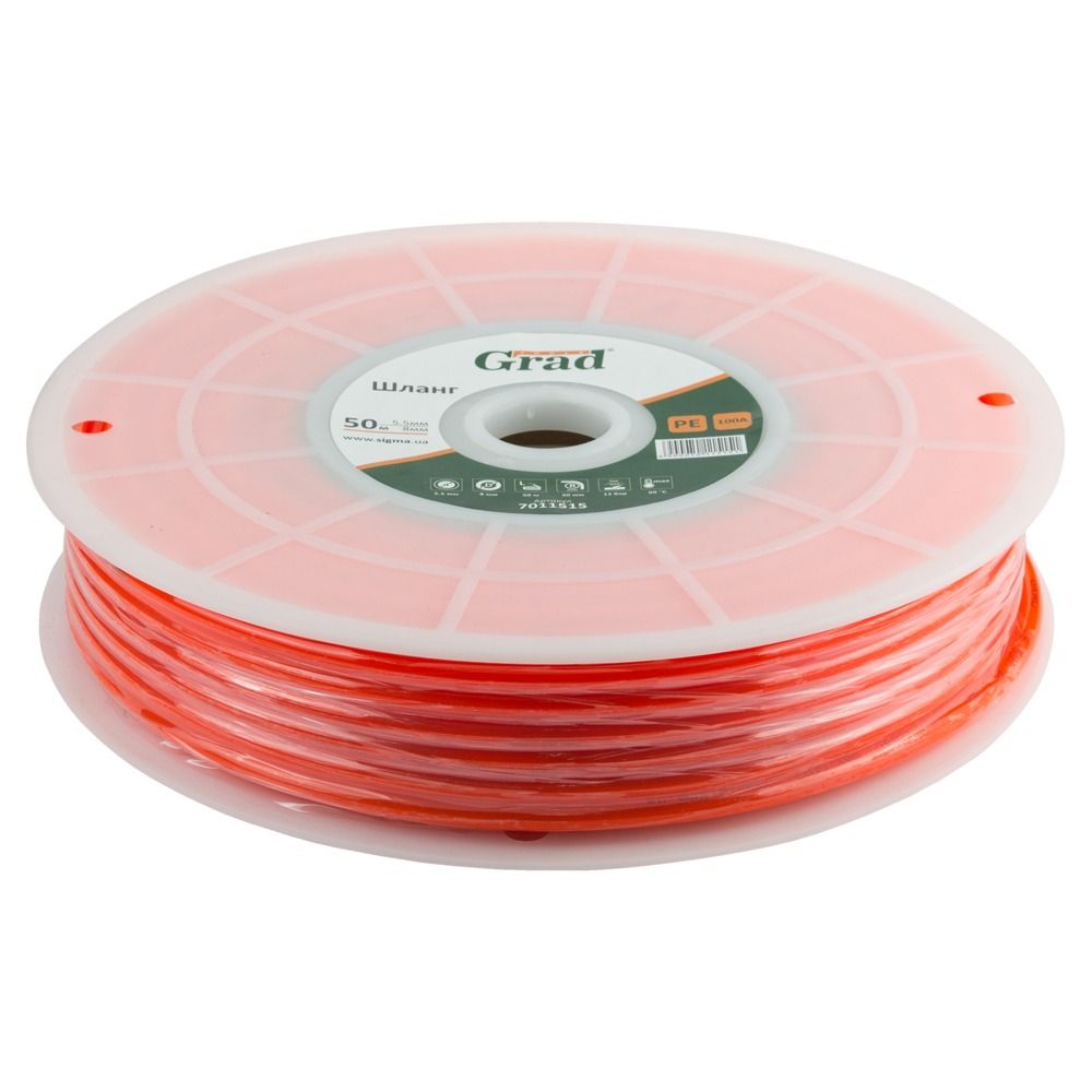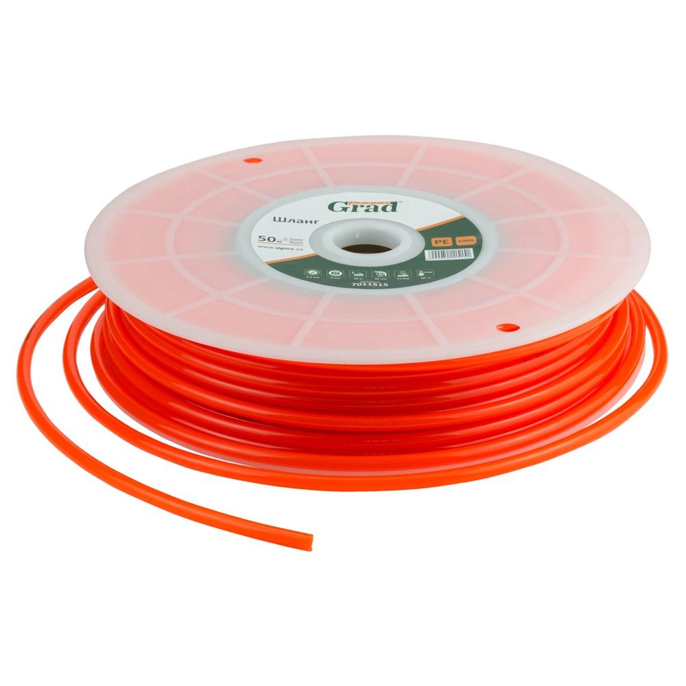 Шланг в бухті поліетиленовий (PE) 50м 5.58мм GRAD (7011515) використовується для передачі повітря в пневматичних системах стандартного тиску. Шланг не схильний до гідролізу і має хорошу стійкість до впливу озону і мікроорганізмів.