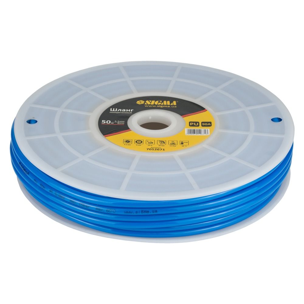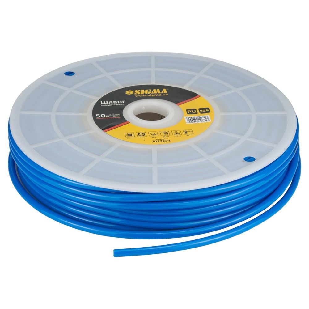 Шланг поліуретановий у бухті 50 м 5.58 мм SIGMA (7012671) використовується для подачі повітря в пневматичних системах стандартного тиску. Завдяки міцному матеріалу має високу стійкість до механічних впливів, таких як перегини, здавлювання чи скручування, і швидко відновлює первинну форму після навантажень.
