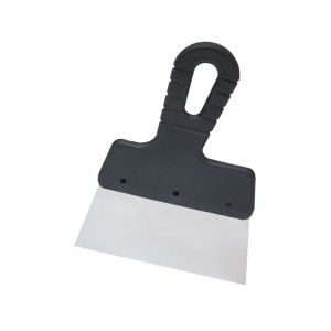Шпатель малярний нержавіючий Yoshimoto з пластмасовою ручкою, 150 мм, призначений для проведення фарбувальних робіт в будівництві, ремонті та дизайну приміщень. Завдяки своїй широкій робочій поверхні, він зручний для нанесення широких шарів фарби або шпатлювальної суміші. Використовується як професійними малярами, так і аматорами.