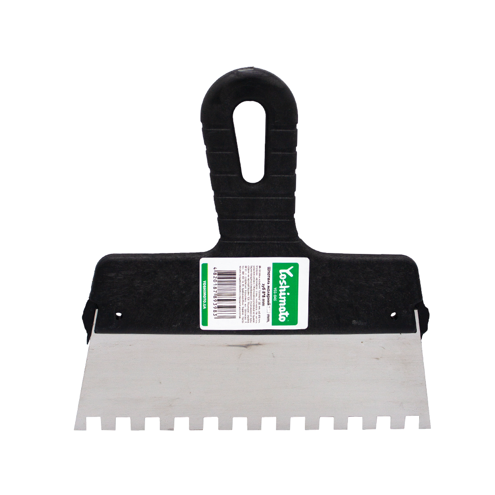 Шпатель малярний Yoshimoto Y03-045 із нержавіючої сталі з пластиковою ручкою призначений для нанесення клейових сумішей при облицювальних і теплоізоляційних роботах.