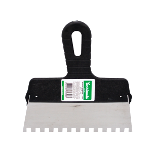 Шпатель малярний Yoshimoto Y03-049 із нержавіючої сталі з пластиковою ручкою призначений для нанесення клейових сумішей при облицювальних і теплоізоляційних роботах.