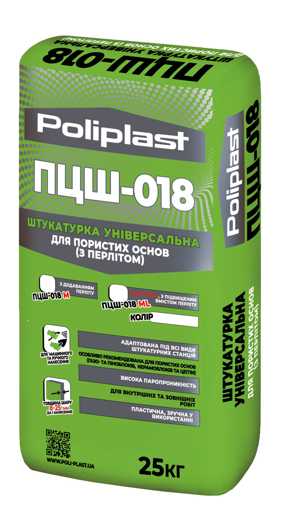 Штукатурки ПЦШ-018 M та ПЦШ-018 ML – це універсальні цементно-вапняні суміші з додаванням перліту, призначені для ручного та машинного нанесення.