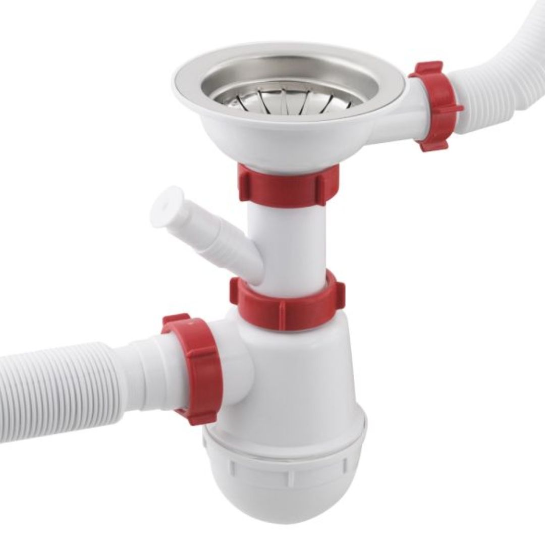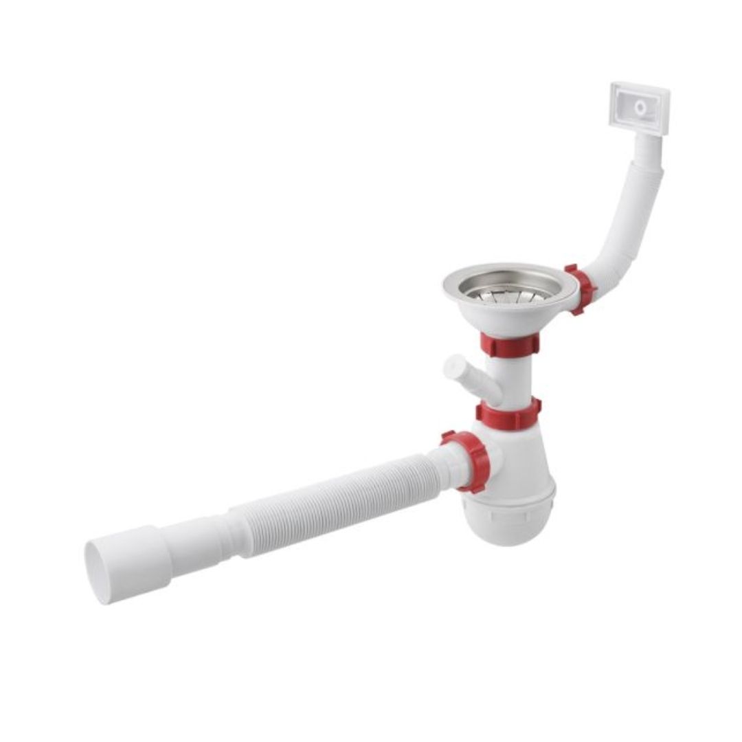 Сифон POLMARK 3 1/2" * 40 з гнучким переливом і гнучкою трубою 40*40/50 мм — це високоякісна сантехнічна деталь для кухонних мийок та раковин. Призначений для швидкого і ефективного відведення води, має гнучке підключення, що дозволяє без труднощів під’єднувати до будь-якої конструкції. Сифон оснащений круглим гнучким переливом, що запобігає переповненню і забезпечує надійне функціонування.