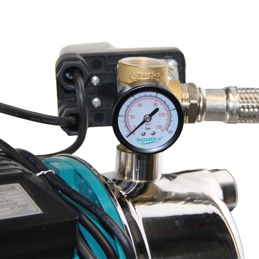 Насосна станція AQUATICA 775098/50 призначена для автоматичного водопостачання приватних будинків, дач, котеджів і систем поливу. Оснащена самовсмоктуючим насосом із корпусом з нержавіючої сталі, що забезпечує довговічність і стійкість до корозії. Потужність 1,1 кВт гарантує стабільний напір до 50 м при максимальній продуктивності 60 л/хв. Великий гідробак об’ємом 50 л дозволяє рідше вмикати насос, що продовжує термін його служби.