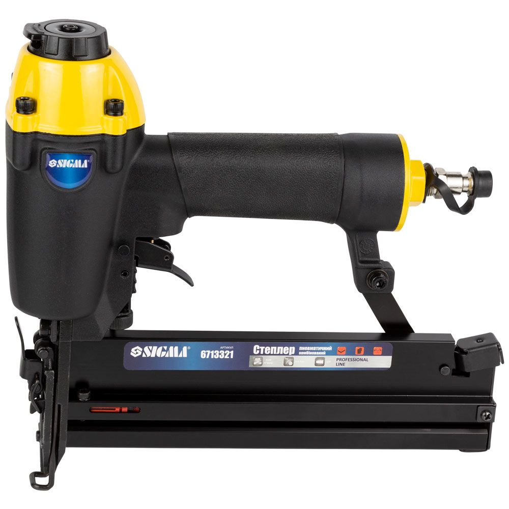 Степлер пневматичний комбінований "Plus" 0.04л/удар 5-7бар скоба 5.8мм (16-40мм) 1.251мм цвях (10-50мм) 1.251мм SIGMA (6713321) призначений для швидкого скріплення матеріалів за допомогою цвяхів і скоб. Використовується при виконанні будівельних, монтажних, оббивних і столярних робіт для кріплення листових матеріалів до різних поверхонь (дерева, гіпсокартону, фанери, ДВП, шкіри, тканини і т.п.).