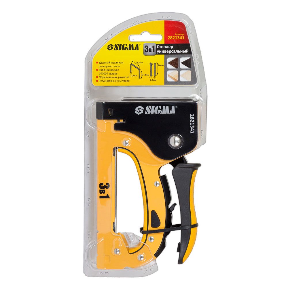 Степлер універсальний з регулятором ресорного типу 6-14мм SIGMA (2821341) призначений для швидкого кріплення листового матеріалу (оргаліту, фанери, ДСП, ДВП, плівки, утеплювача) до основи.