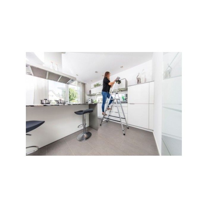 Стрем'янка KRAUSE Safety (5 сходинок) - надійний та безпечний інструмент для використання в побуті та на виробництві. Виготовлений з високоякісного матеріалу, що забезпечує довговічність і надійність в експлуатації. Має п'ять сходинок з антискользячим покриттям, що забезпечує безпечну роботу на висоті. Зручна в зберіганні та транспортуванні завдяки складному механізму. Великий вибір кольорів для підбору під інтер'єр.
