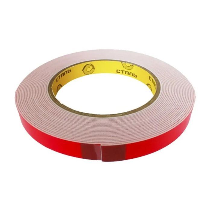 Двостороння монтажна стрічка Сталь 12 мм х 5 м з червоним лайнером забезпечує надійне з'єднання дерева, пластику та металу. Ідеальна для використання в будівництві, поліграфії, рекламній продукції та автомобільному тюнінгу. Відрізняється міцністю і тривалістю склеювання.