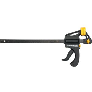 Струбцина 'автомат' пластмасова, L=400мм підходить для використання в будівництві, ремонтних роботах та для домашнього використання. Вона дозволяє фіксувати об'єкти без зусиль та забезпечує стабільну фіксацію на тривалий час.