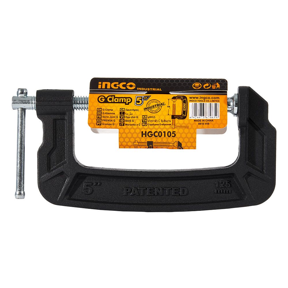 G-подібна струбцина INGCO INDUSTRIAL 125 мм призначена для надійного затиску і фіксації заготовок під час склеювання або виконання слюсарних робіт. Виготовлена з кованого чавуну, що забезпечує високу міцність та довговічність. Ширина затиску становить 125 мм, а максимальна сила затиску досягає 900 кгс, що дозволяє ефективно утримувати різні деталі для забезпечення точності робіт.