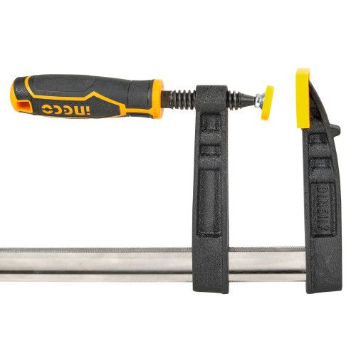 Струбцина столярна тип-F 120500 мм INGCO INDUSTRIAL ідеально підходить для використання в столярному ремеслі, будівництві, автосервісі та багатьох інших галузях. Вона допоможе фіксувати деталі під час обробки, з'єднання або ремонту.