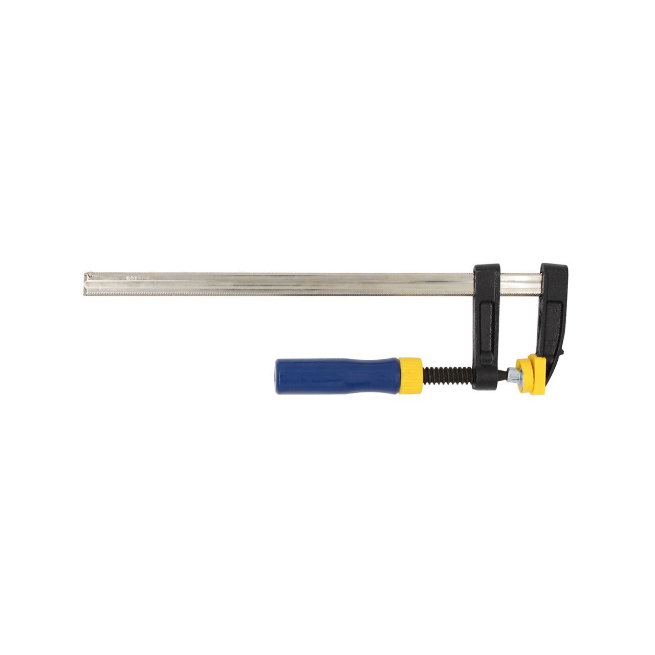 Струбцина столярна тип "F" 500*120 мм, 330 кг, DIN5117, з дерев'яною ручкою. Вона відноситься до F-подібних струбцин і має велику ширину захоплення 500 мм і глибину затискання 120 мм. Виготовлена з дерева і металу. Ця струбцина має посилений дизайн, що дозволяє затягувати ще більш важкі об'єкти з надійністю. Розміри струбцини становлять 500 х 120 мм. Ця струбцина є ідеальним інструментом для столярних робіт та інших сфер застосування.